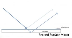 A second surface mirror, also known as a standard or regular mirror, creates a ghosting effect (double image).